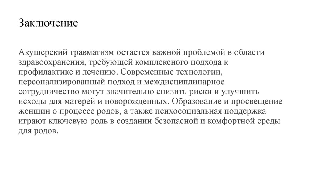 ЗаключениеАкушерский травматизм остается важной проблемой в области