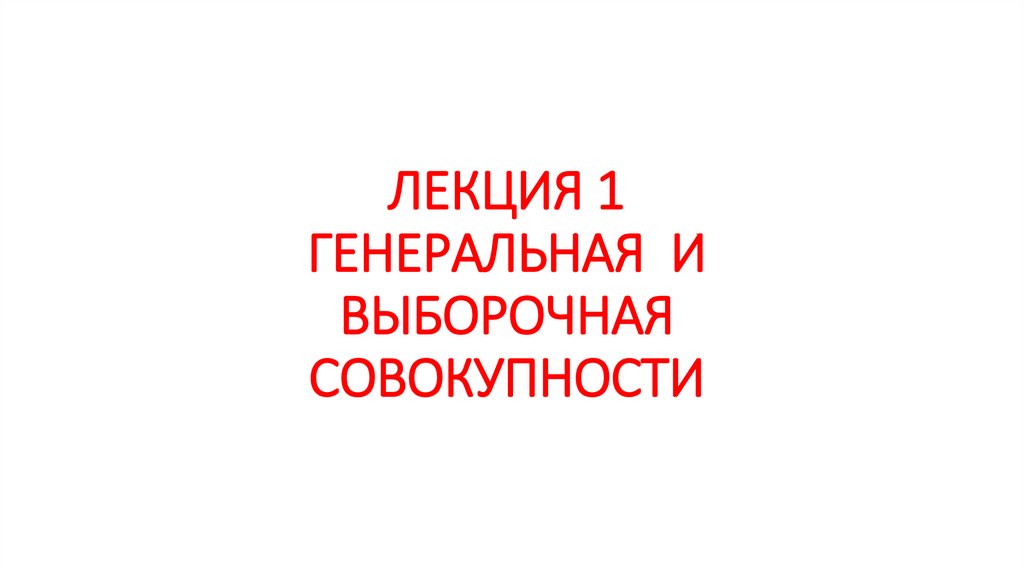 ЛЕКЦИЯ 1 ГЕНЕРАЛЬНАЯ И ВЫБОРОЧНАЯ СОВОКУПНОСТИ