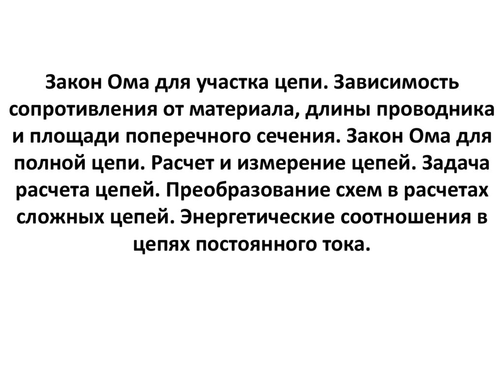 Закон Ома для участка цепи. Зависимостьсопротивления от материала, длины проводника