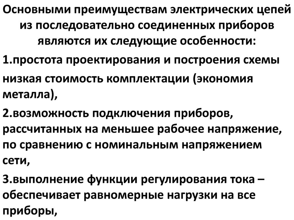 Основными преимуществам электрических цепейиз последовательно соединенных приборов