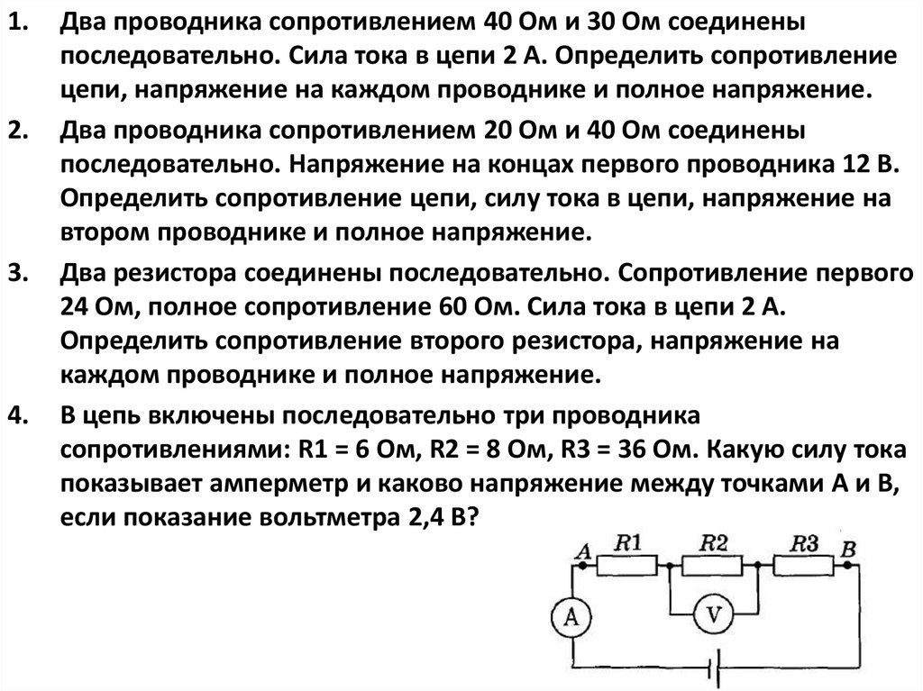 Два проводника сопротивлением 40 Ом и 30 Ом соединены