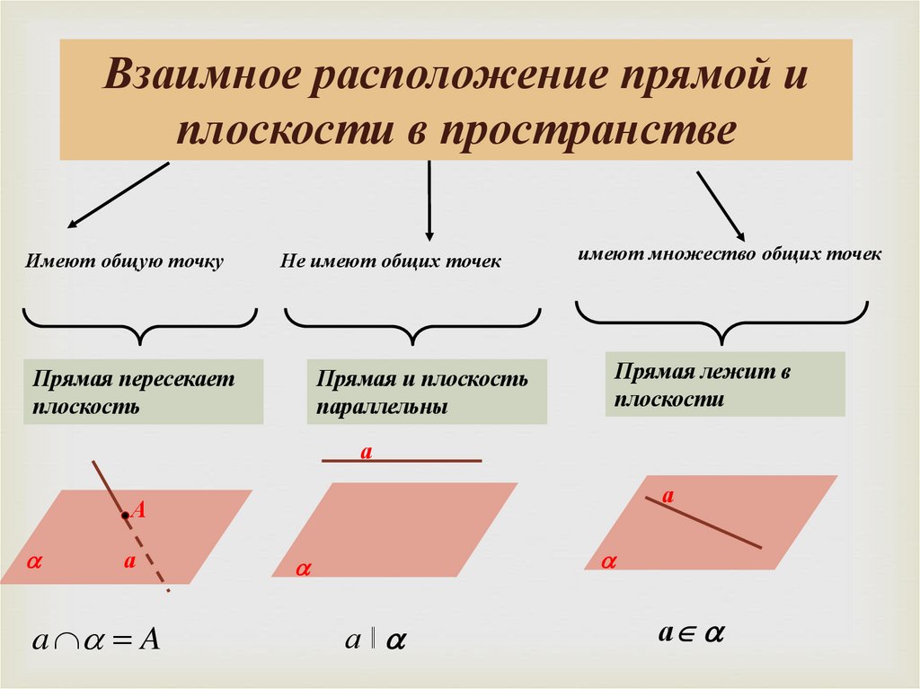 2. Пересечение плоскости и прямой3. Перпендикулярность плоскости и прямой