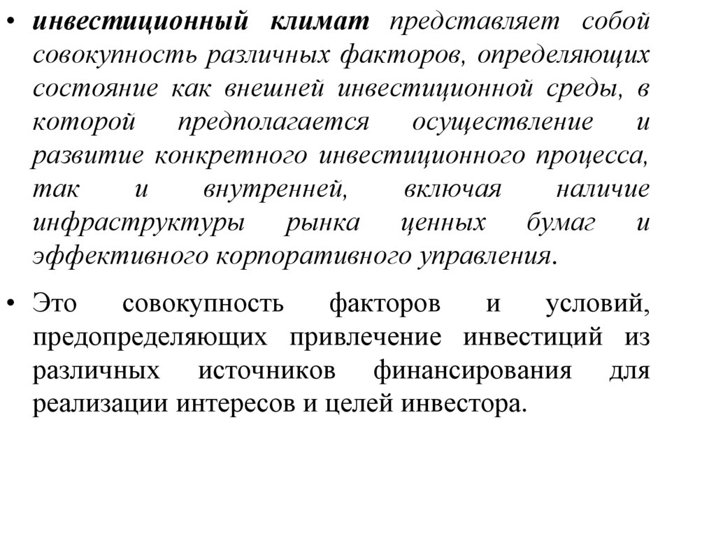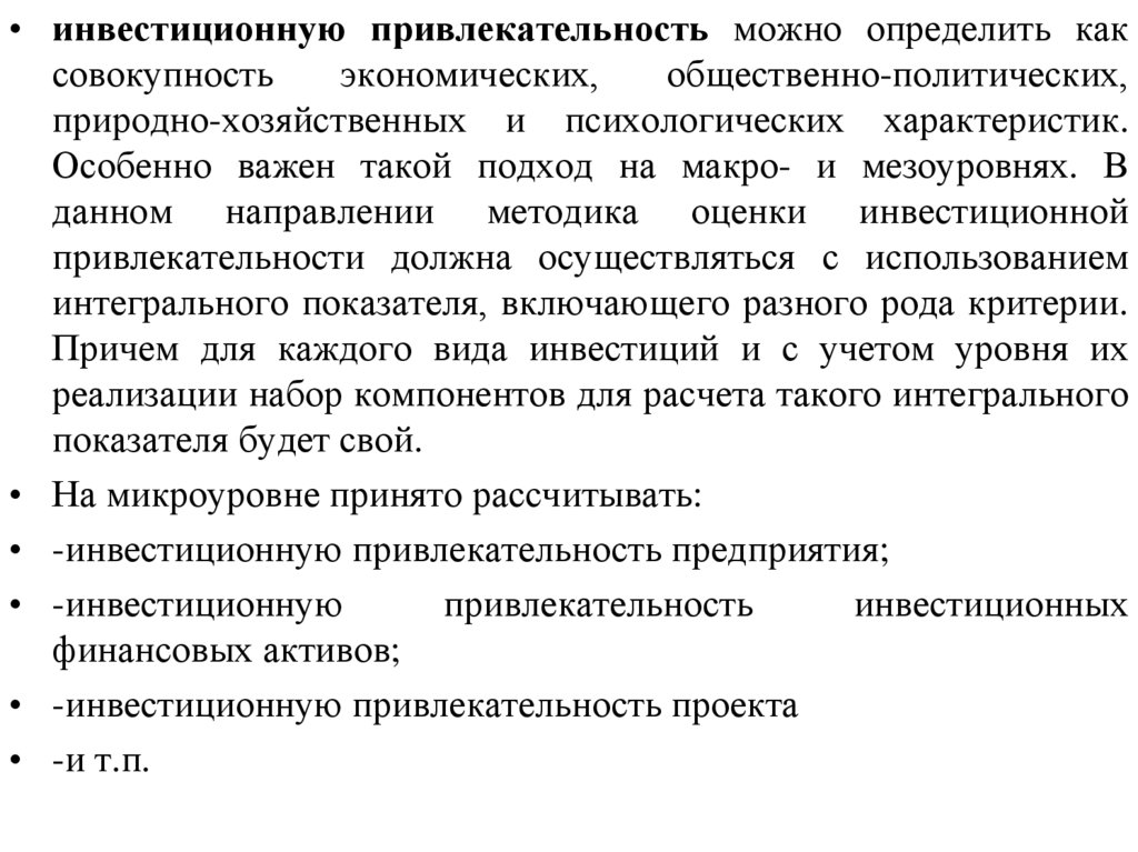 • инвестиционную привлекательность можно определить каксовокупность