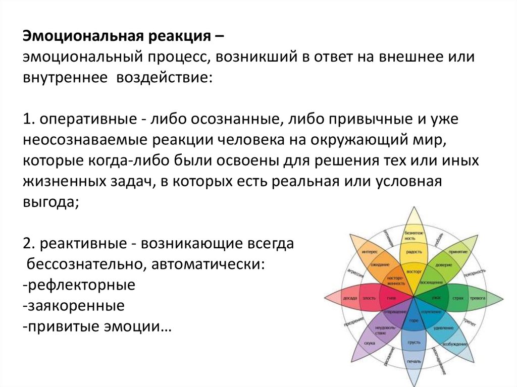 Эмоциональная реакция –эмоциональный процесс, возникший в ответ на внешнее или