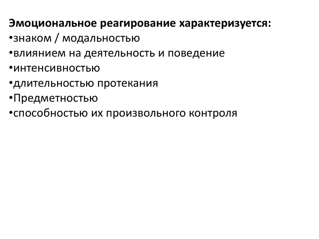 Эмоциональное реагирование характеризуется:•знаком / модальностью