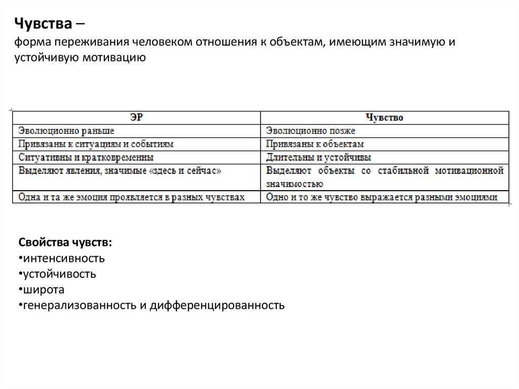 Чувства –форма переживания человеком отношения к объектам, имеющим значимую и