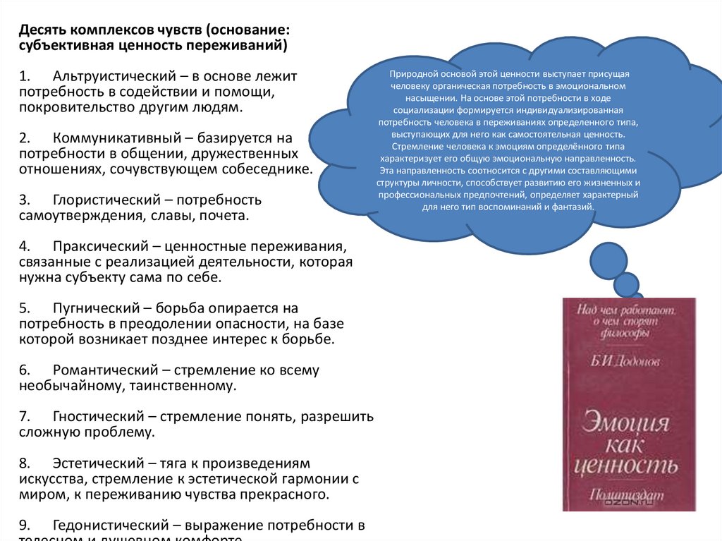 Десять комплексов чувств (основание:субъективная ценность переживаний)