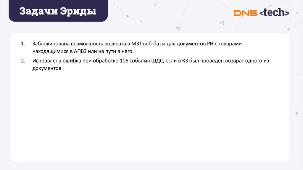 Исправлена ошибка при обработке 106 события ШДС, если в КЗ был проведен возврат одного из