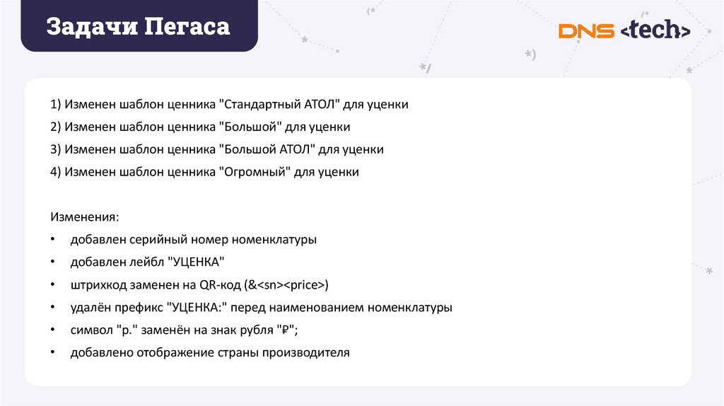 Задачи Пегаса1) Изменен шаблон ценника "Стандартный АТОЛ" для уценки