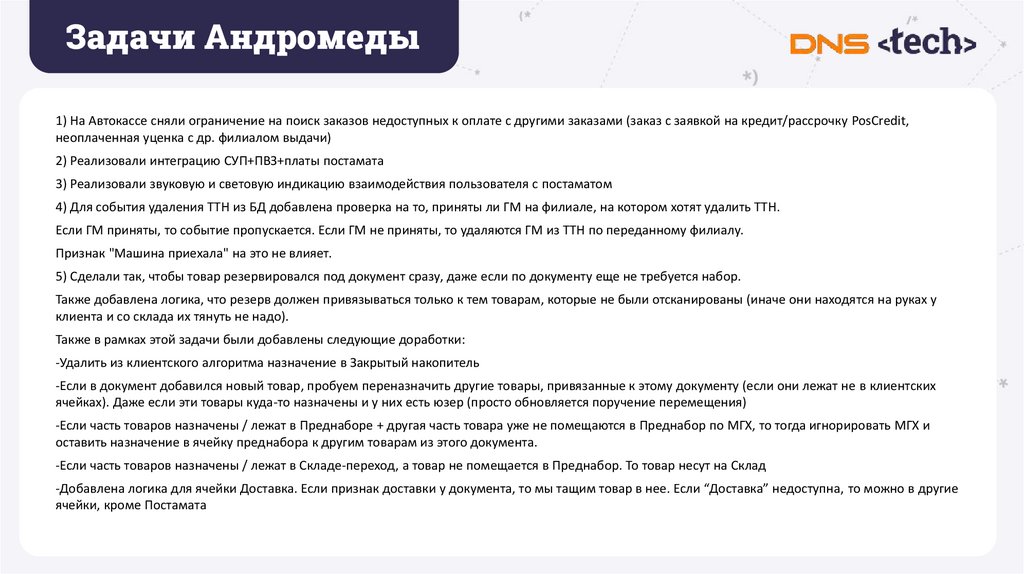 Задачи Андромеды1) На Автокассе сняли ограничение на поиск заказов недоступных к оплате с другими заказами (заказ с заявкой на кредит/рассрочку PosCredit,