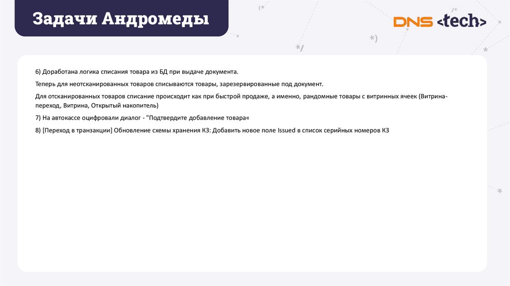 Задачи Андромеды6) Доработана логика списания товара из БД при выдаче документа.