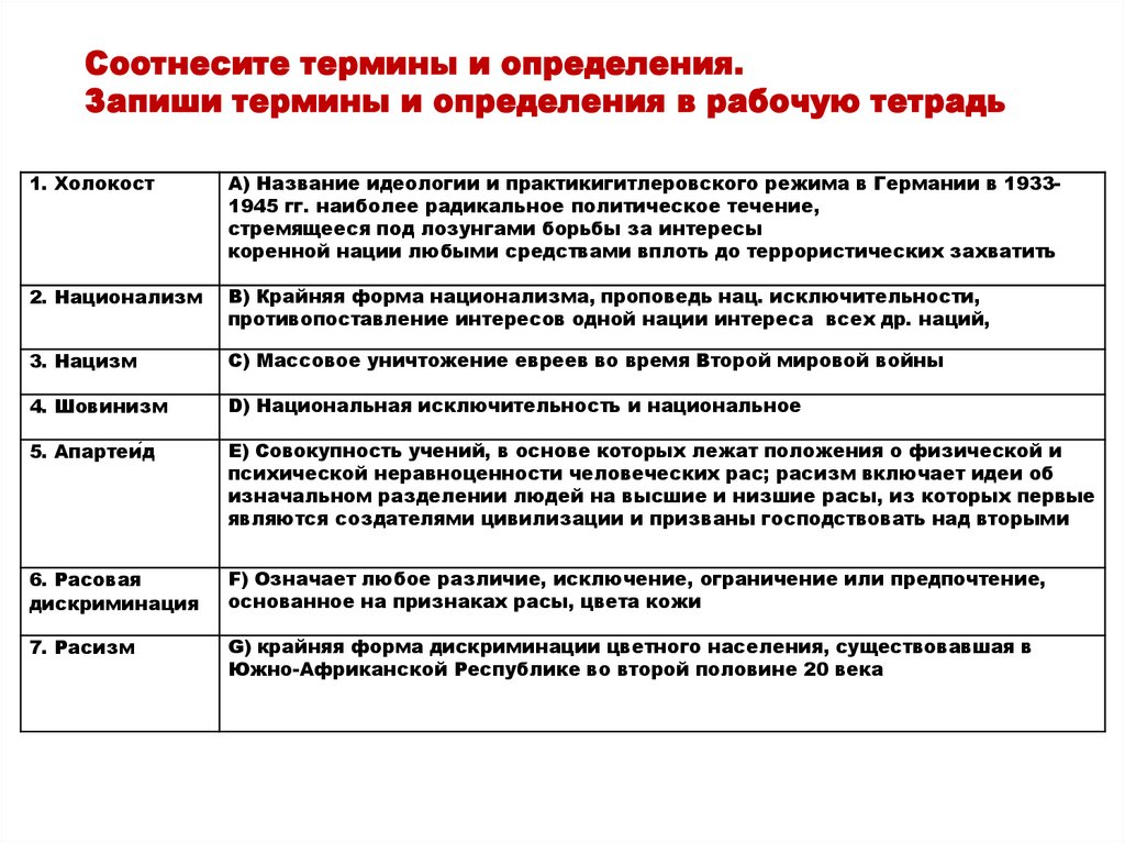 Соотнесите термины и определения.Запиши термины и определения в рабочую тетрадь