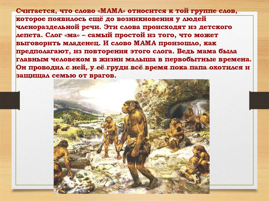 Считается, что слово «МАМА» относится к той группе слов,которое появилось ещё до возникновения у людей