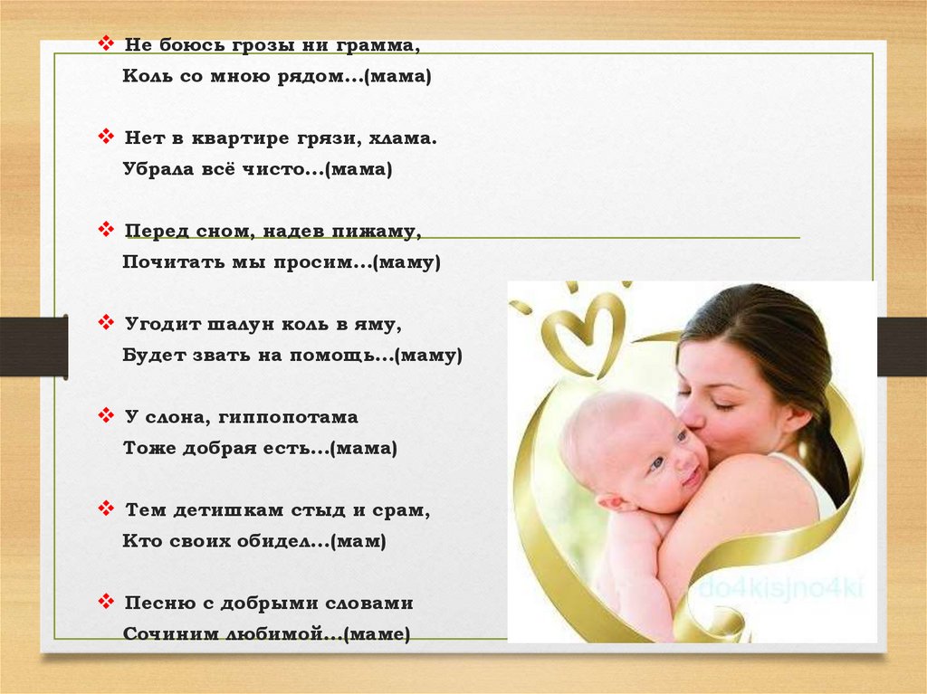 Не боюсь грозы ни грамма,Коль со мною рядом…(мама)