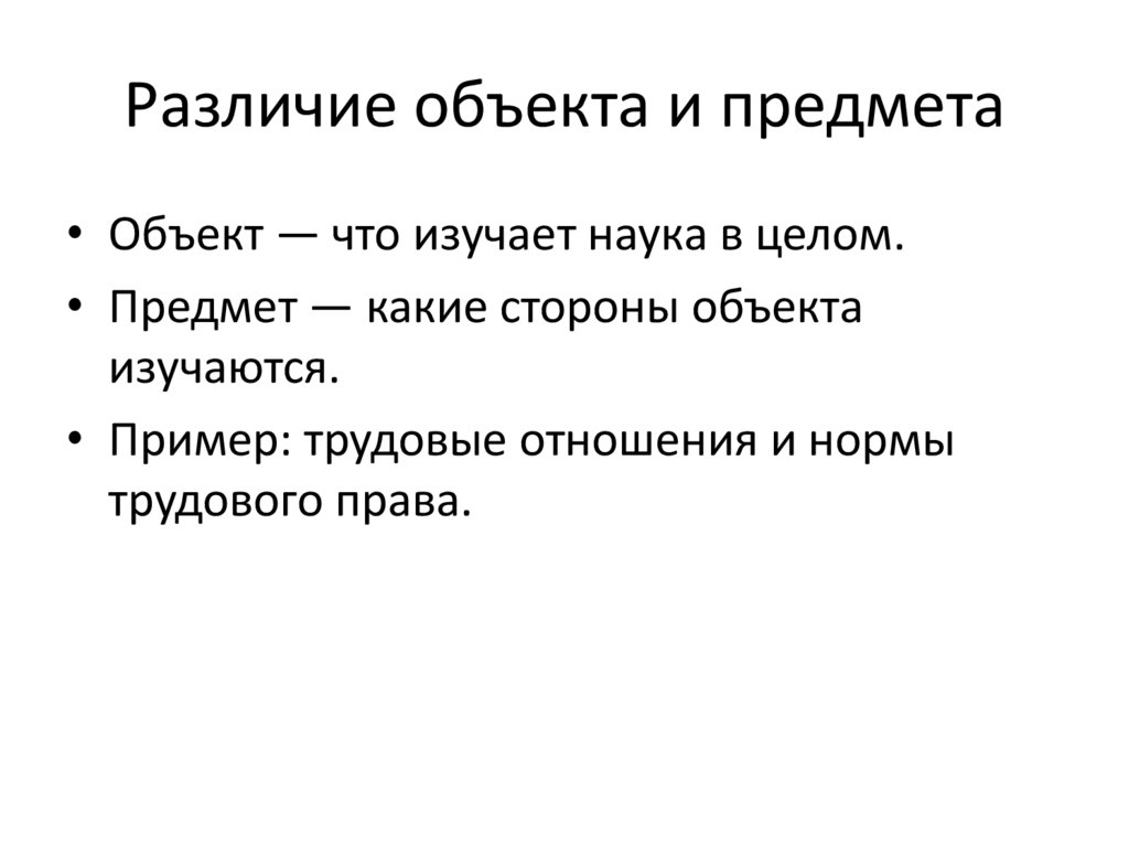 Различие объекта и предмета• Объект — что изучает наука в целом.
