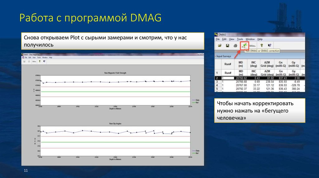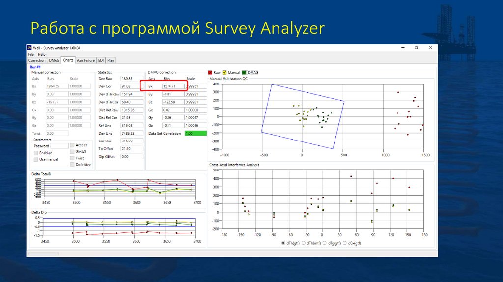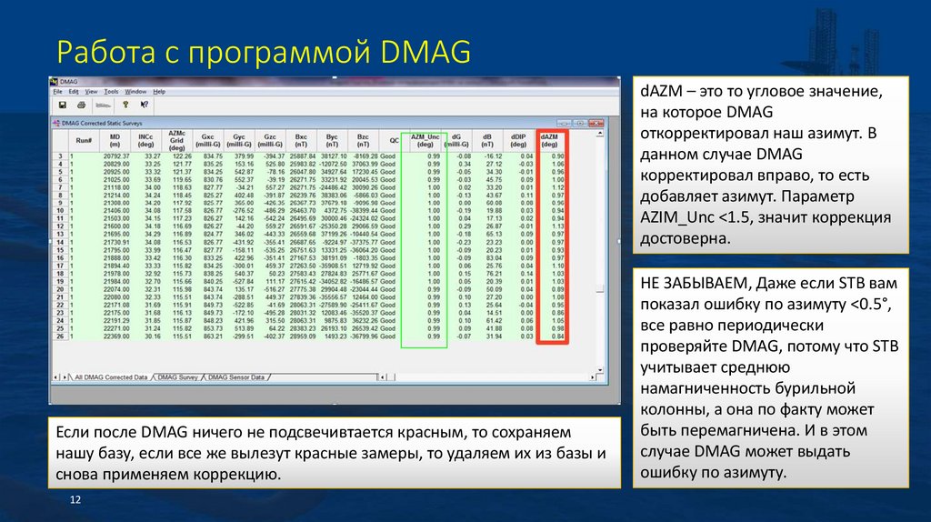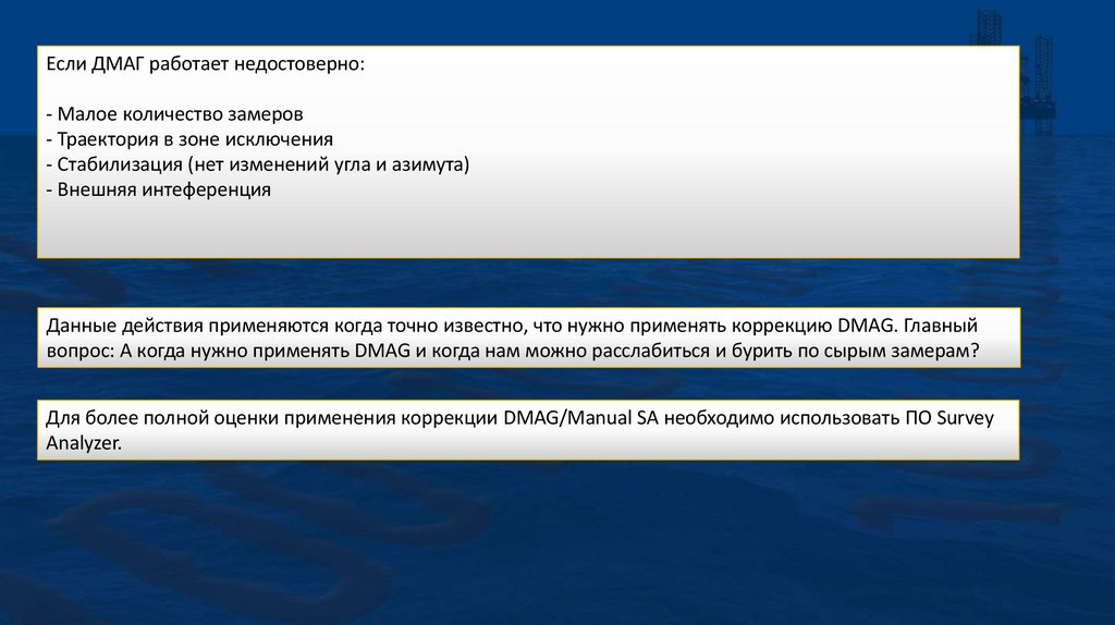 DMAG – это программа для коррекции азимутальной ошибки, котораяопределяет интерференцию от бурильной колонны при помощи статистических
