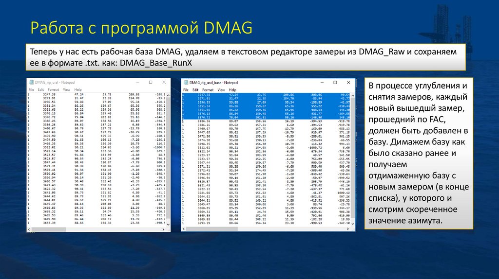 Работа с программой DMAGТеперь у нас есть рабочая база DMAG, удаляем в текстовом редакторе замеры из DMAG_Raw и сохраняем