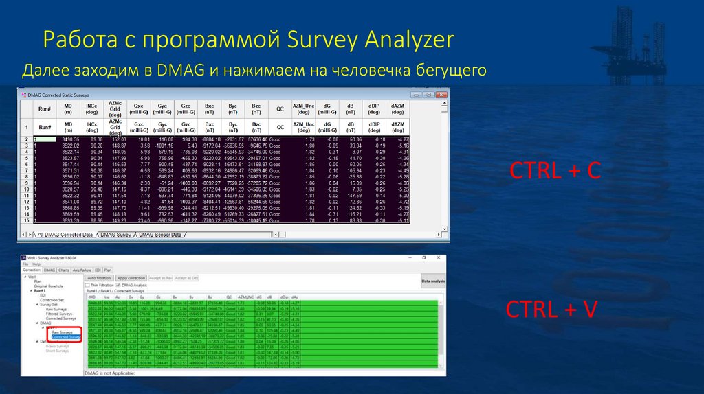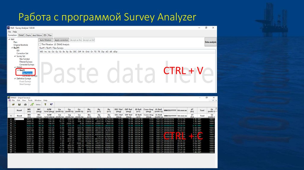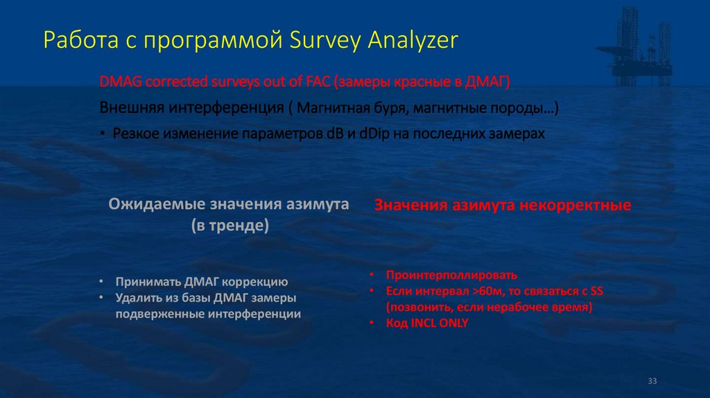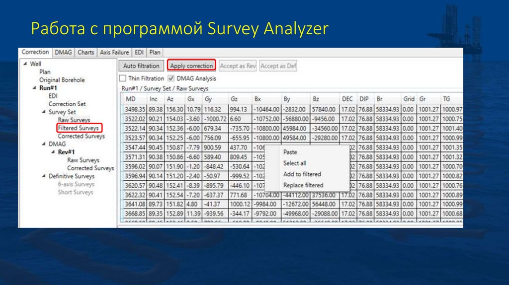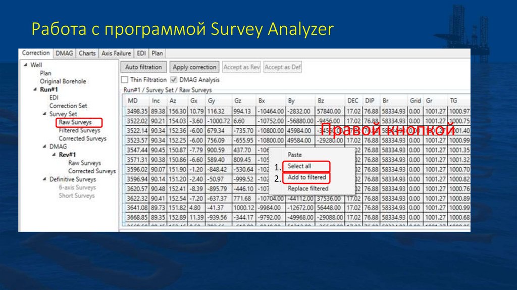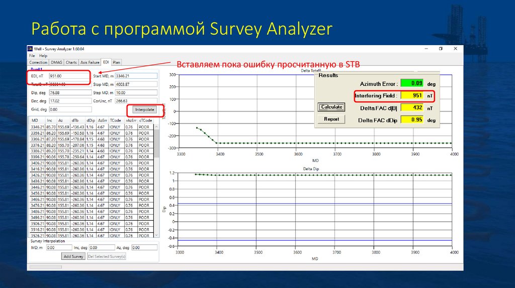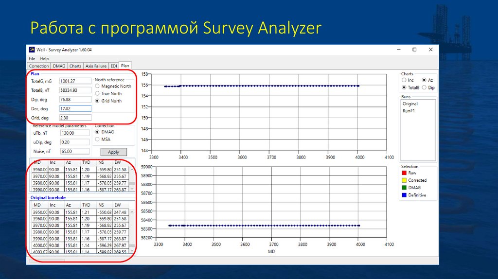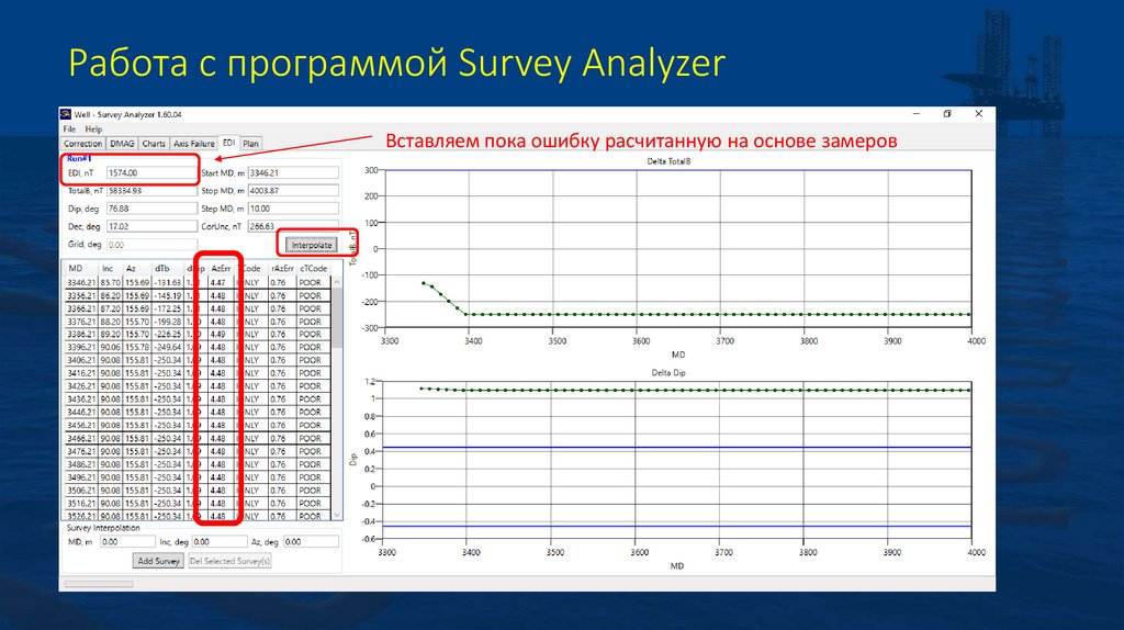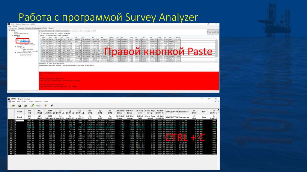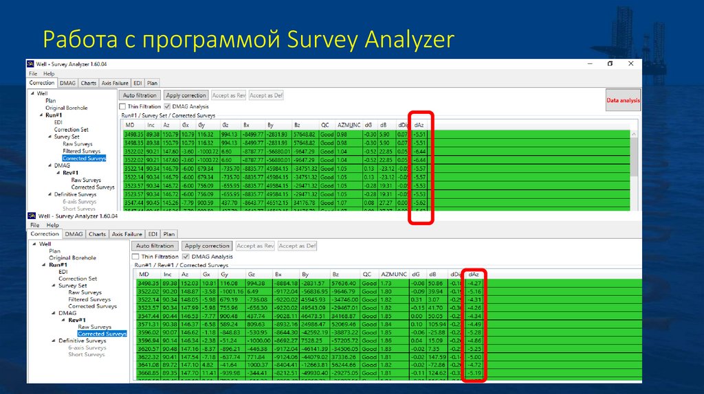 Работа с программой Survey AnalyzerDMAG corrected surveys out of FAC (замеры красные в ДМАГ)
