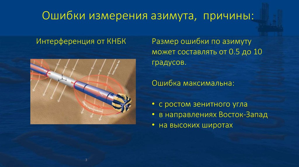 Ошибки измерения азимута, причины:Интерференция от КНБК