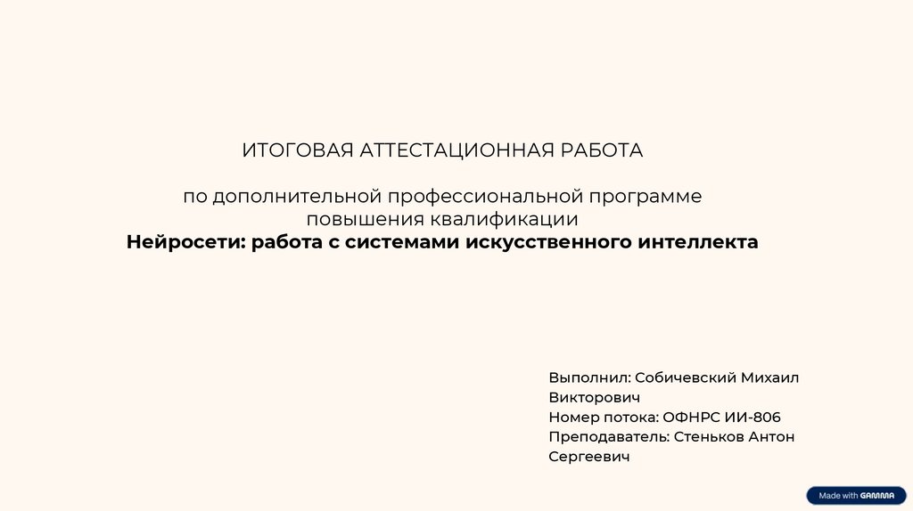 ИТОГОВАЯ АТТЕСТАЦИОННАЯ РАБОТАпо дополнительной профессиональной программе