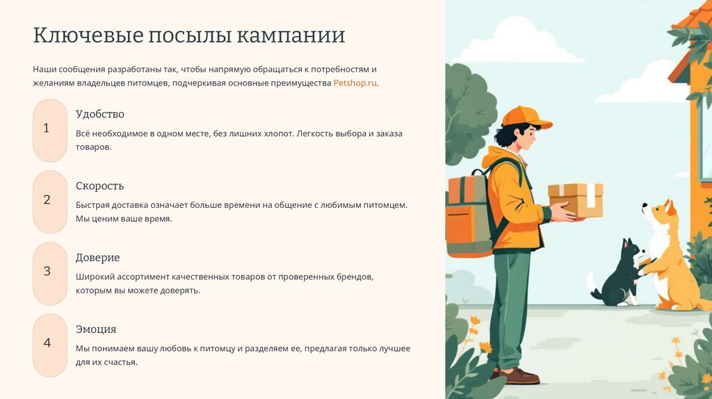 желаниям владельцев питомцев, подчеркивая основные преимущества Petshop.ru.