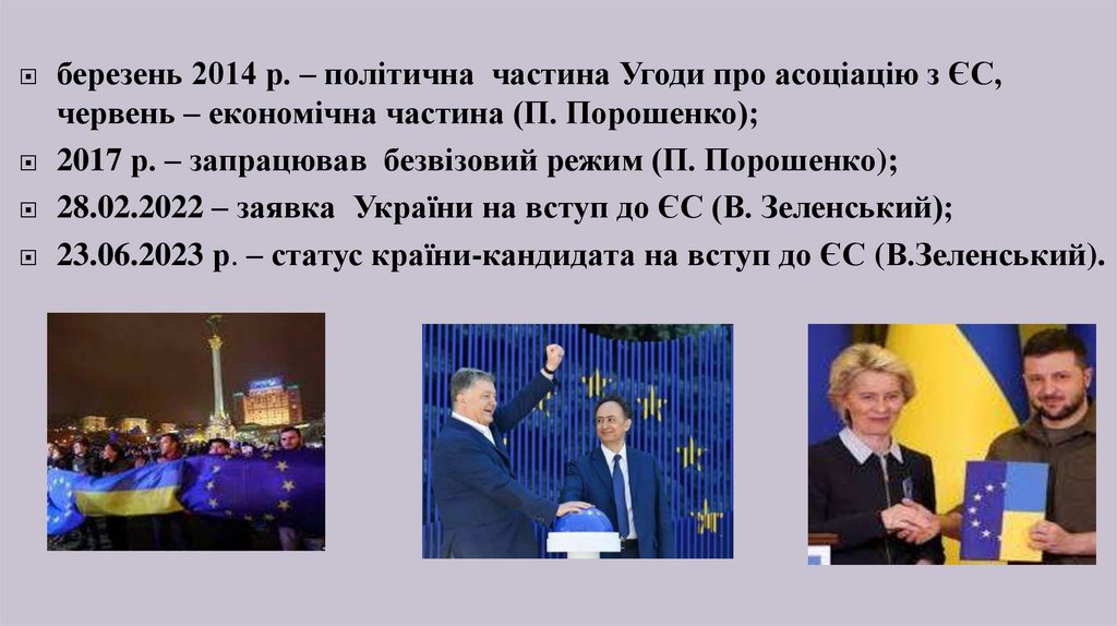 23.06.2023 р. – статус країни-кандидата на вступ до ЄС (В.Зеленський).