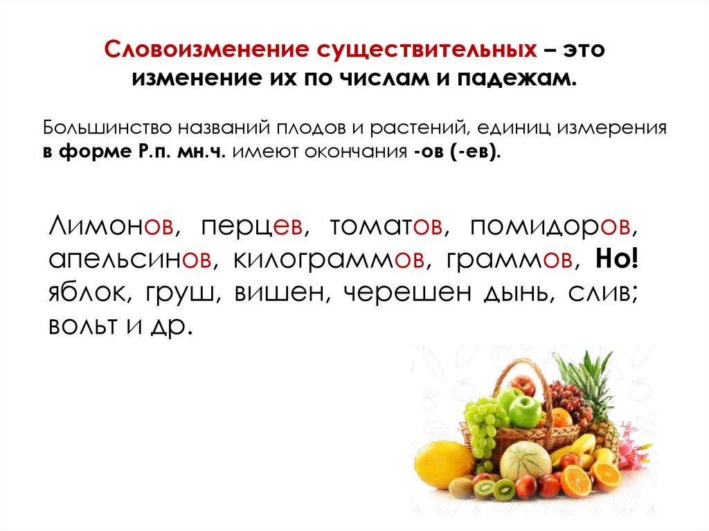 Большинство названий плодов и растений, единиц измерения
