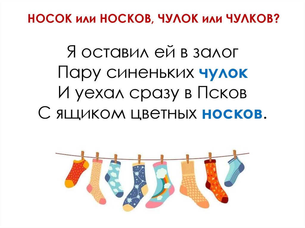 НОСОК или НОСКОВ, ЧУЛОК или ЧУЛКОВ?Я оставил ей в залог