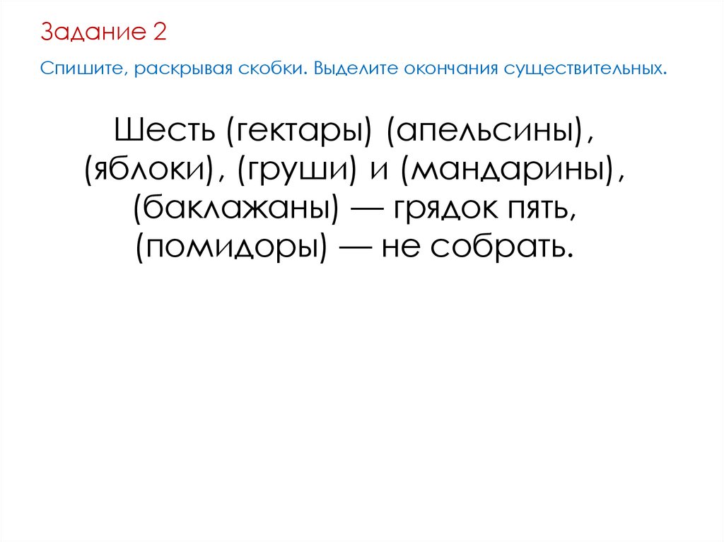 Задание 2Спишите, раскрывая скобки. Выделите окончания существительных.