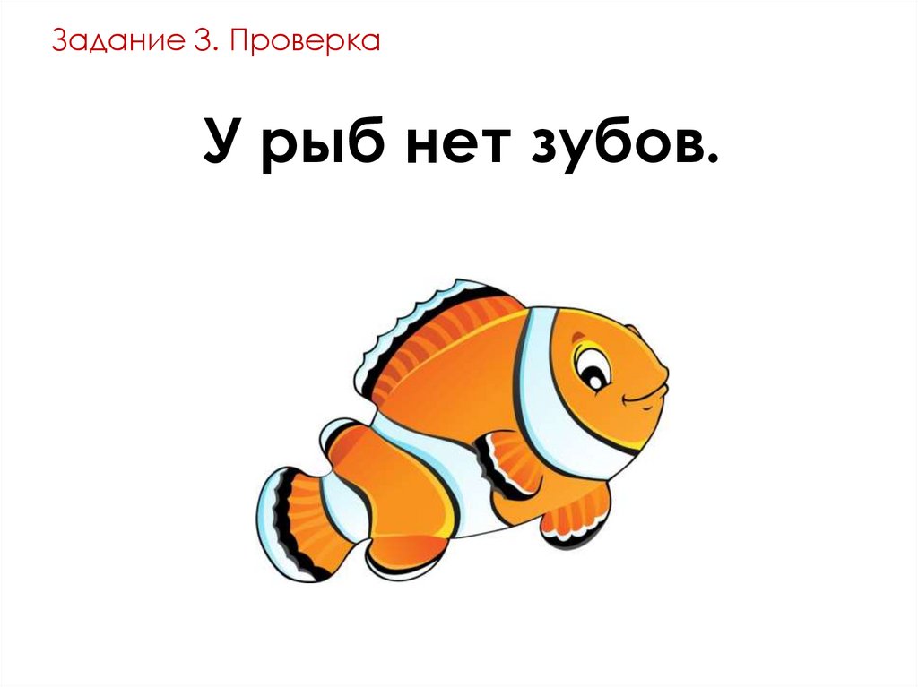 Задание 3. ПроверкаУ рыб нет зубов.