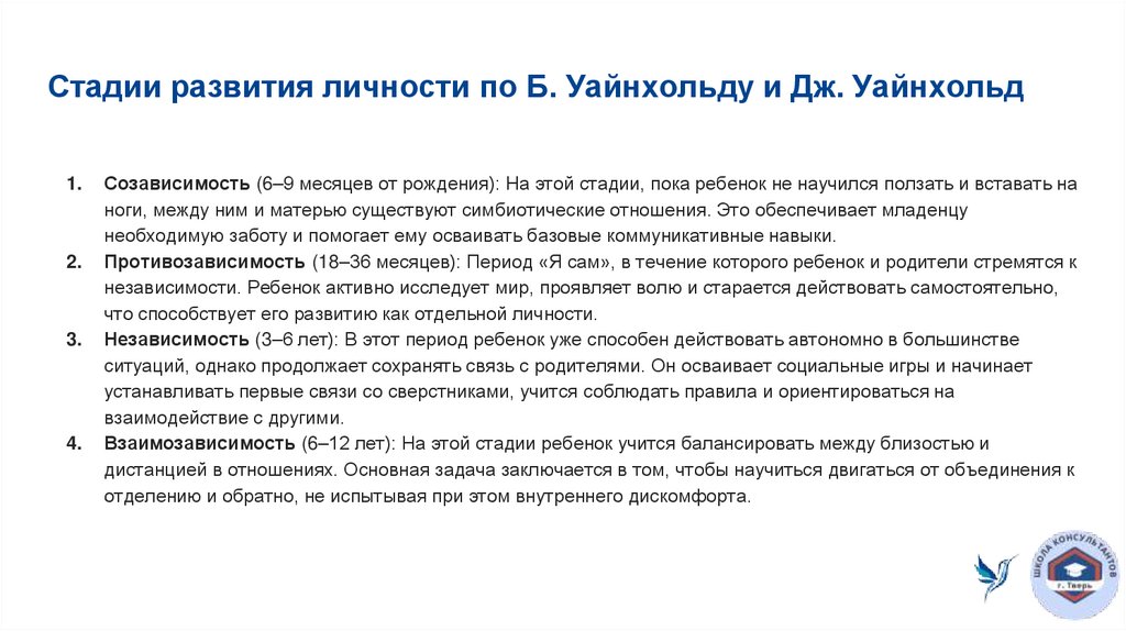 Стадии развития личности по Б. Уайнхольду и Дж. Уайнхольд1.