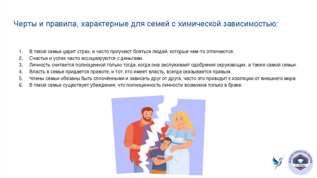 Черты и правила, характерные для семей с химической зависимостью:1.