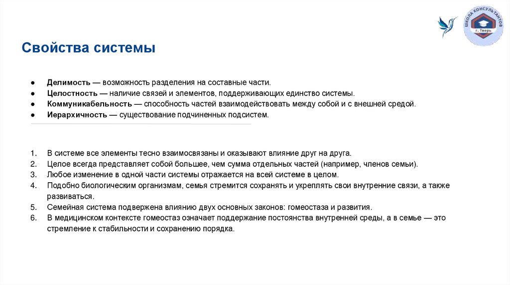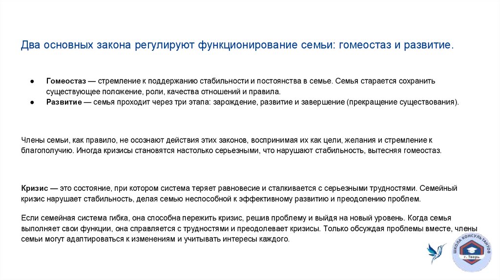 Семейная система подвержена влиянию двух основных законов: гомеостаза и развития.