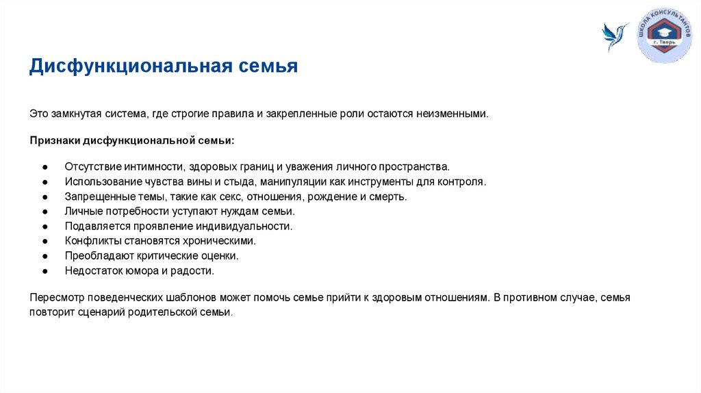 Дисфункциональная семьяЭто замкнутая система, где строгие правила и закрепленные роли остаются неизменными.