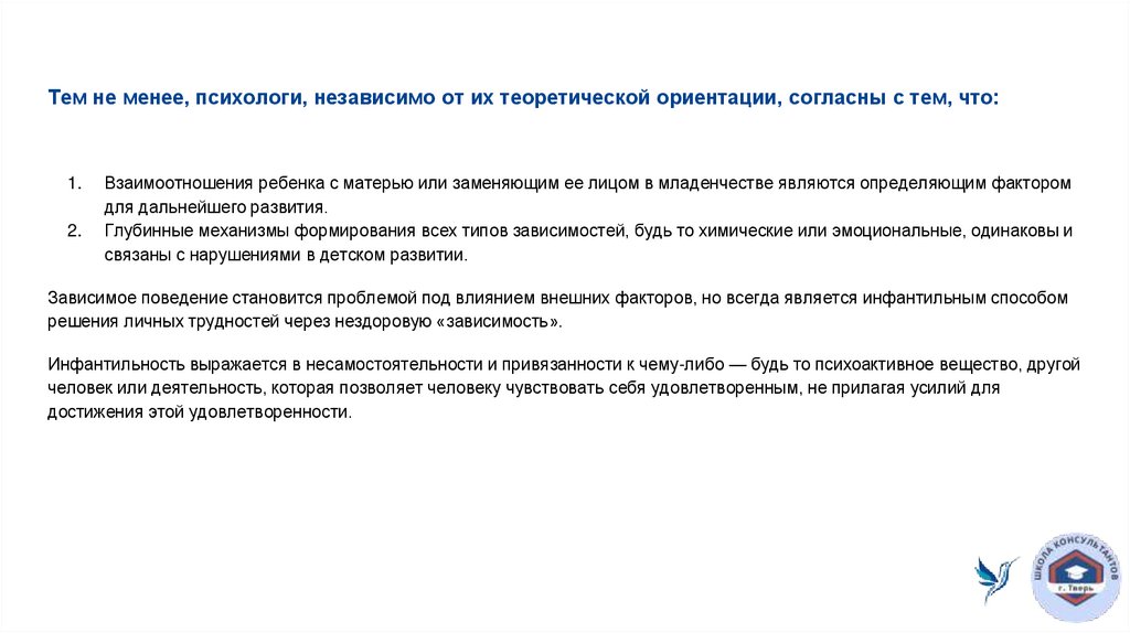 Зависимое поведение становится проблемой под влиянием внешних факторов, но всегда является инфантильным способом