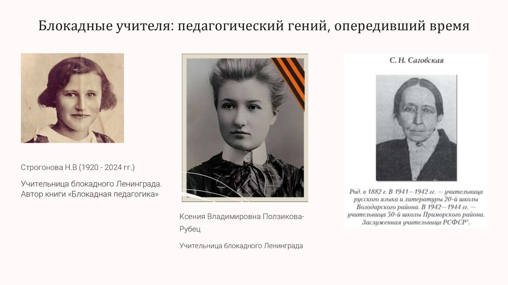 Блокадные учителя: педагогический гений, опередивший времяСтрогонова Н.В (1920 - 2024 гг.)