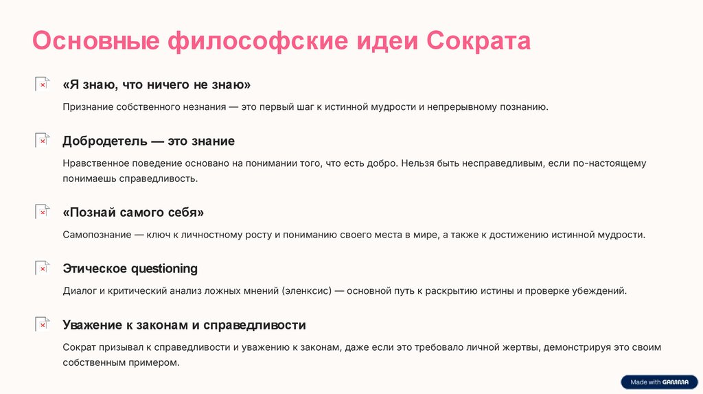 Основные философские идеи Сократа«Я знаю, что ничего не знаю»