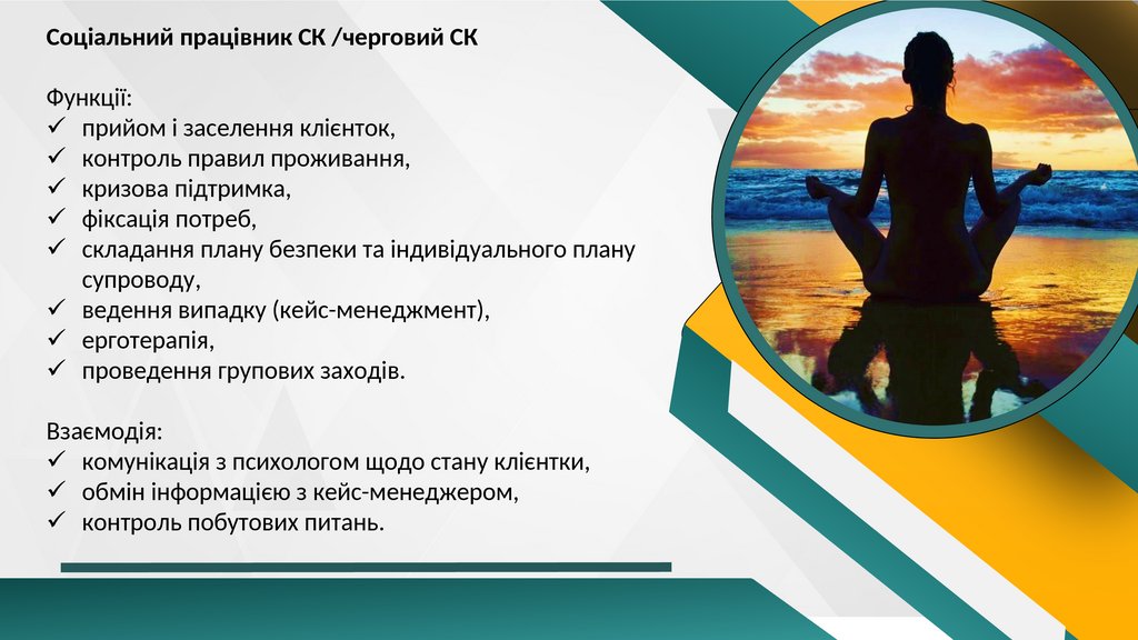 Робота СК включає: соціальний супровід, мотиваційну роботу,