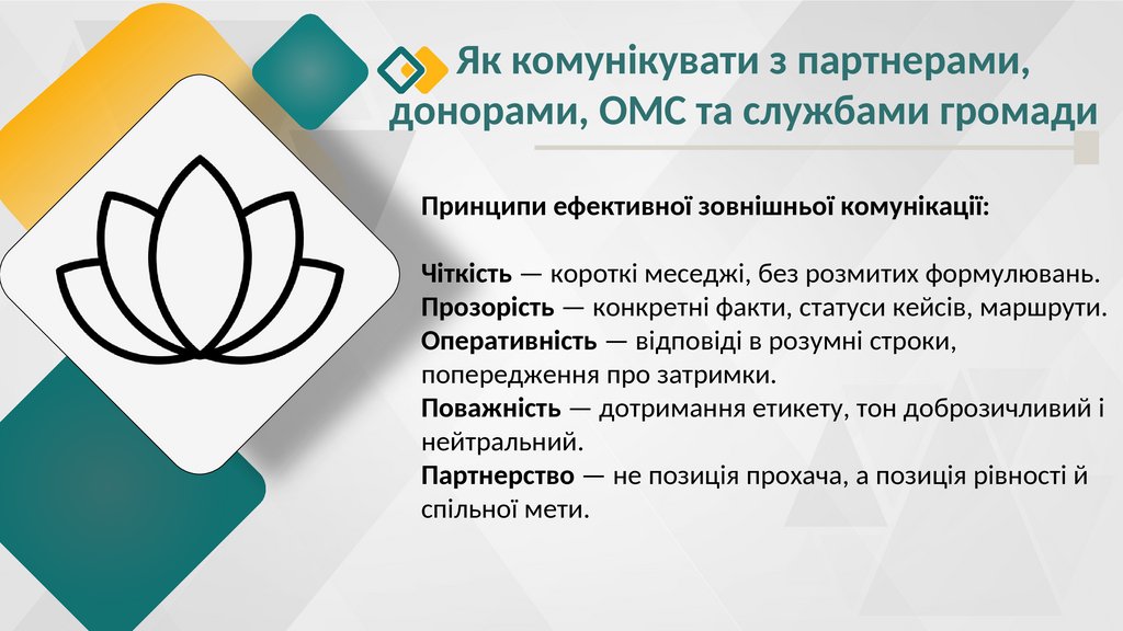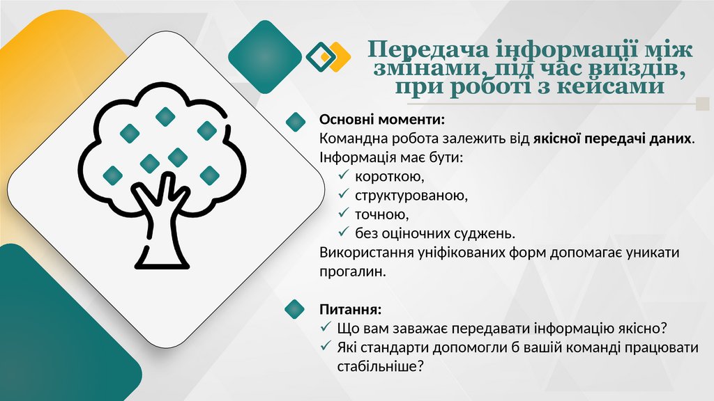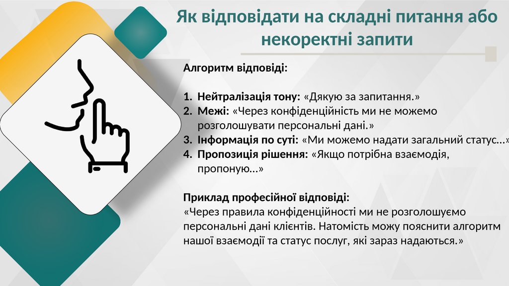 3. Інформація по суті: «Ми можемо надати загальний статус…»