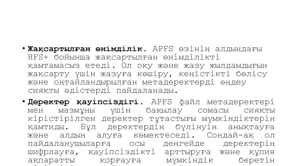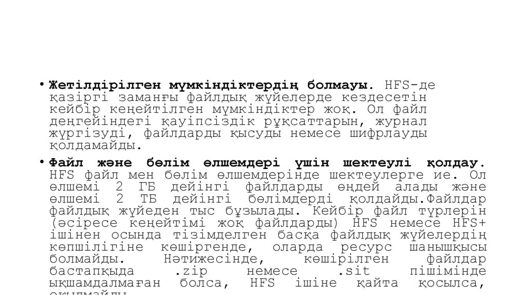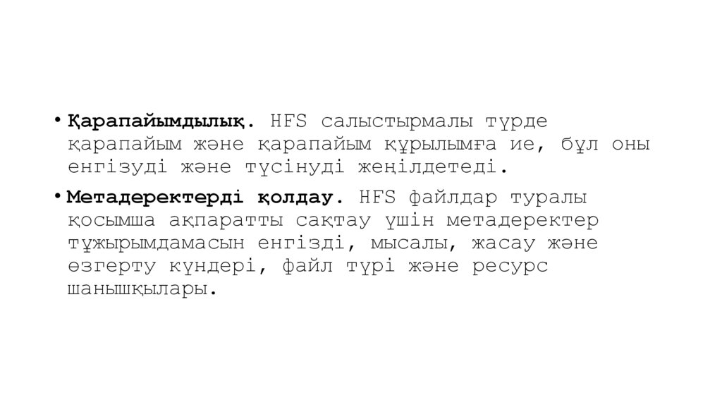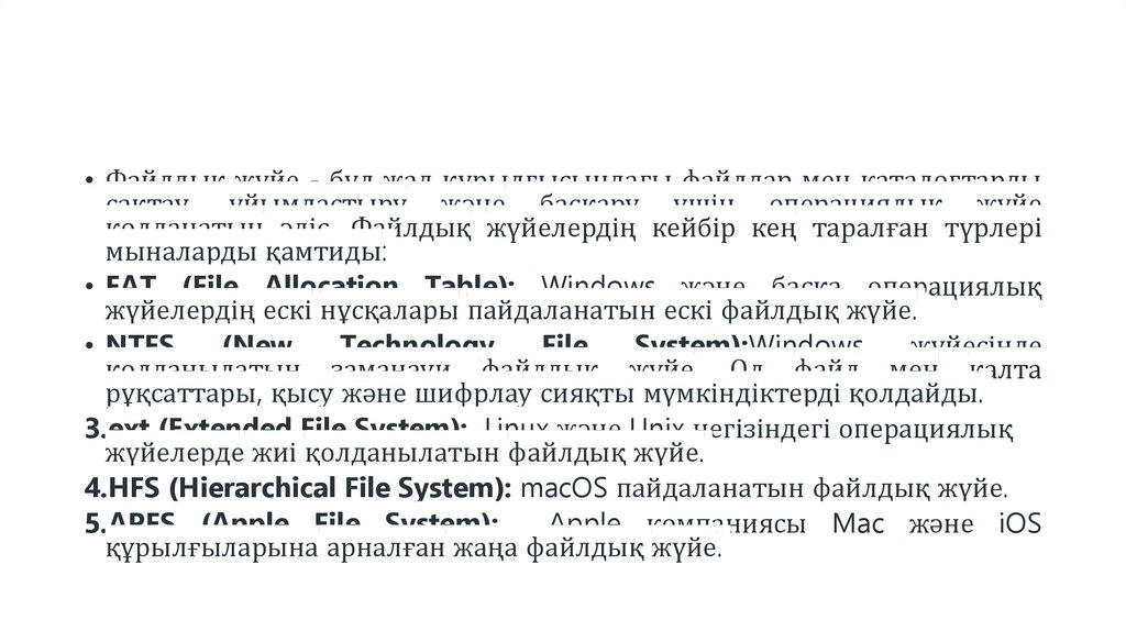 • Файлдық жүйе көптеген пайдаланушылар үшін кез келгеноперациялық жүйенің ең маңызды аспектісі болып