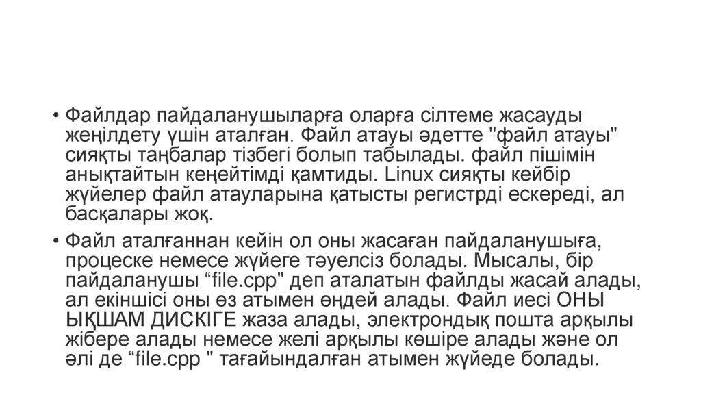 • Файлдар пайдаланушыларға оларға сілтеме жасаудыжеңілдету үшін аталған. Файл атауы әдетте "файл атауы"