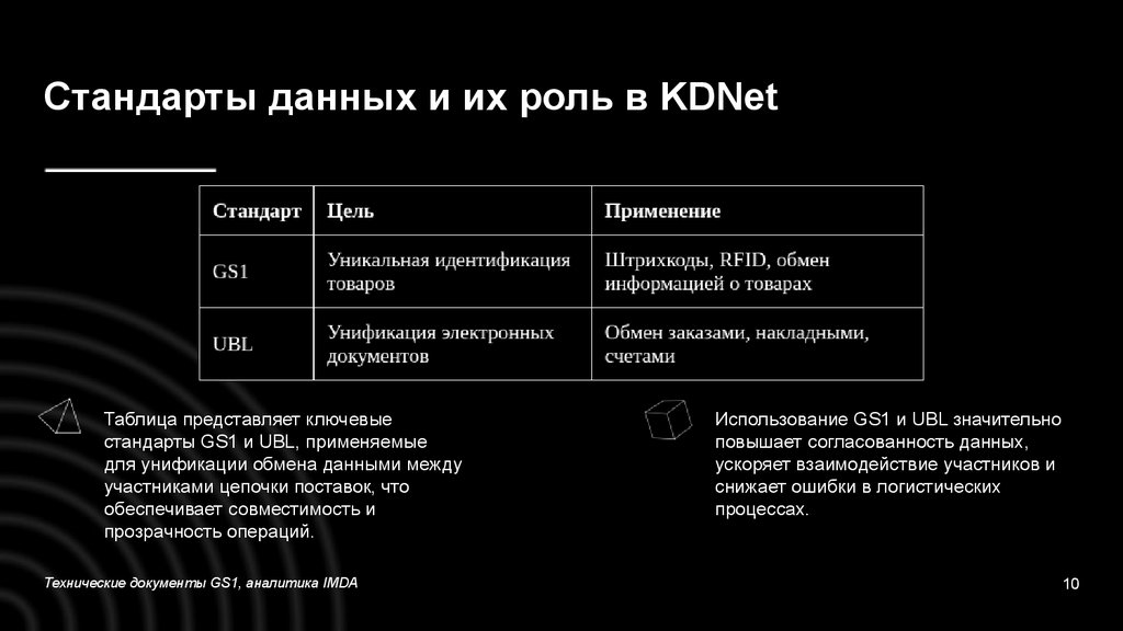 Стандарты данных и их роль в KDNetТаблица представляет ключевые