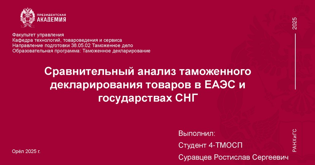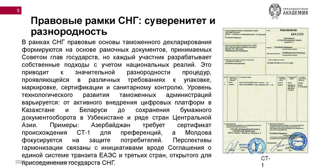 таможенного декларирования в двух интеграционных моделях — ЕАЭС и СНГ.