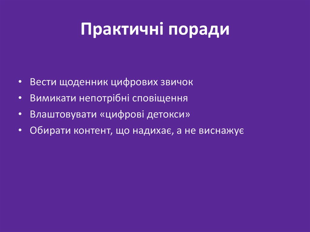 • Зростає потреба у цифровій гігієні та усвідомленому