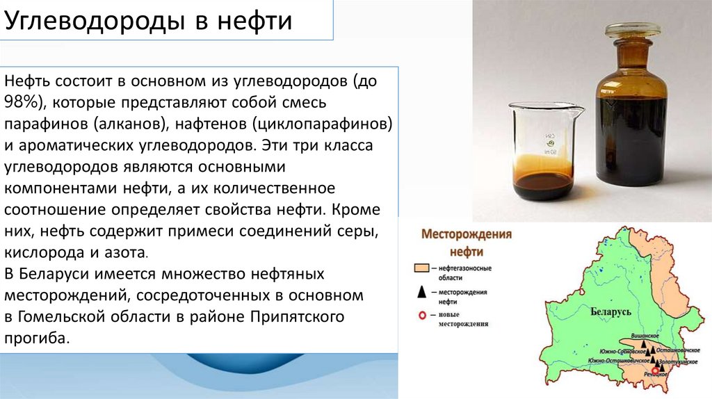 Углеводороды в нефтиНефть состоит в основном из углеводородов (до