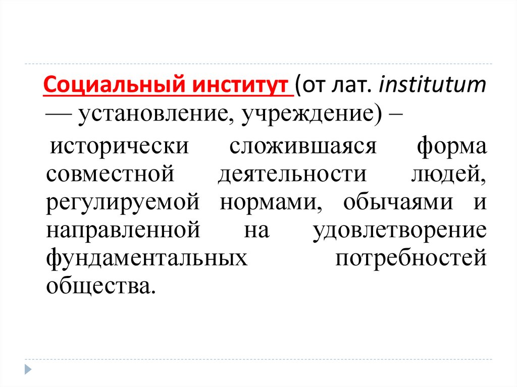 Социальный институт (от лат. institutum— установление, учреждение) –
