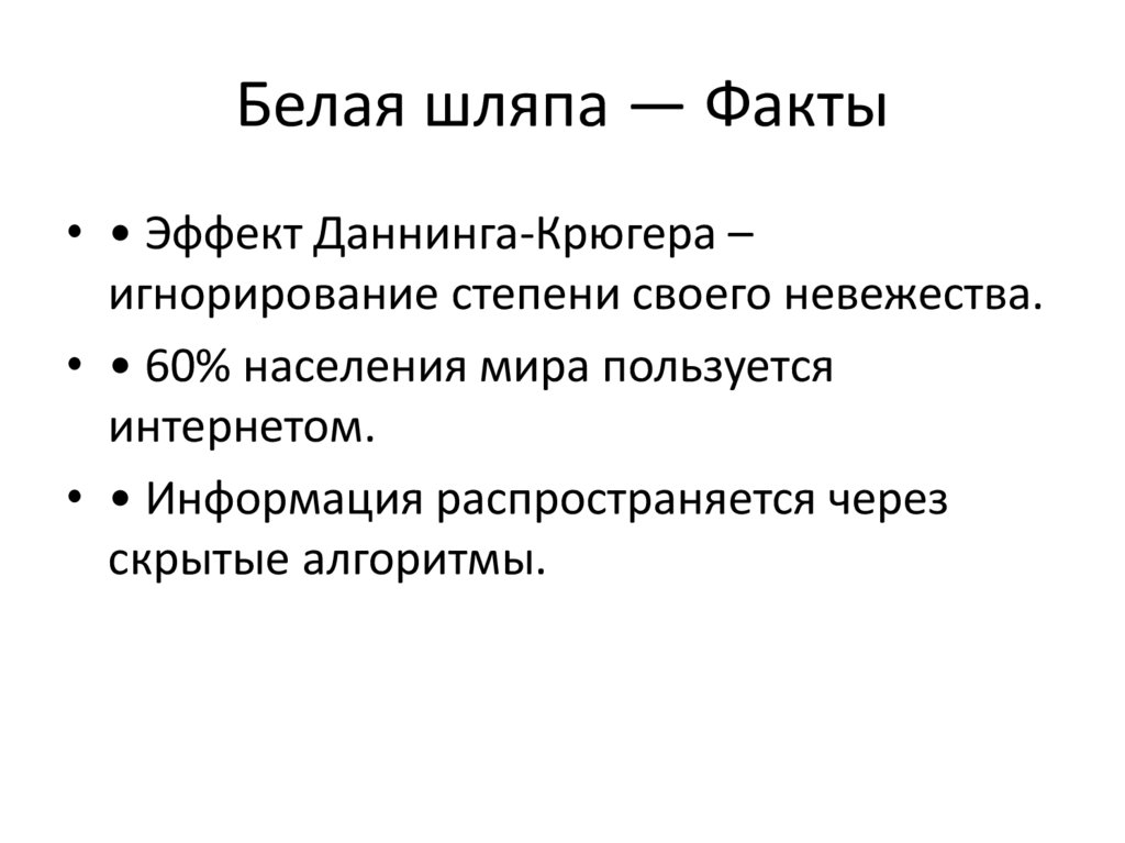 Белая шляпа — Факты• • Эффект Даннинга-Крюгера –
