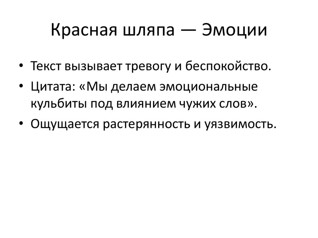 Красная шляпа — Эмоции• Текст вызывает тревогу и беспокойство.