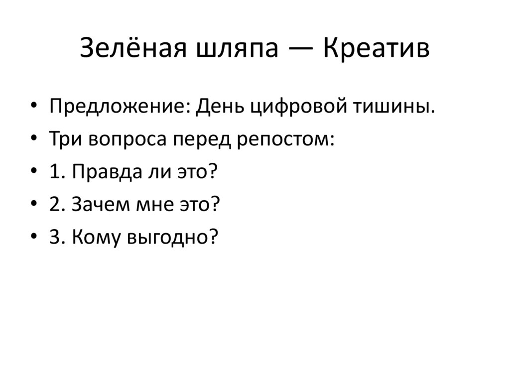Зелёная шляпа — Креатив• Предложение: День цифровой тишины.