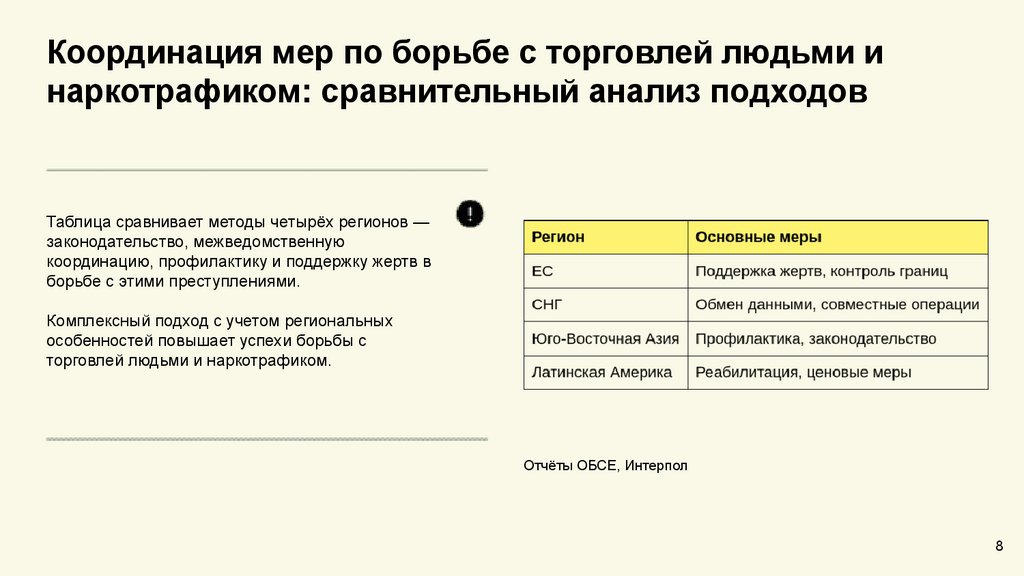 Координация мер по борьбе с торговлей людьми инаркотрафиком: сравнительный анализ подходов